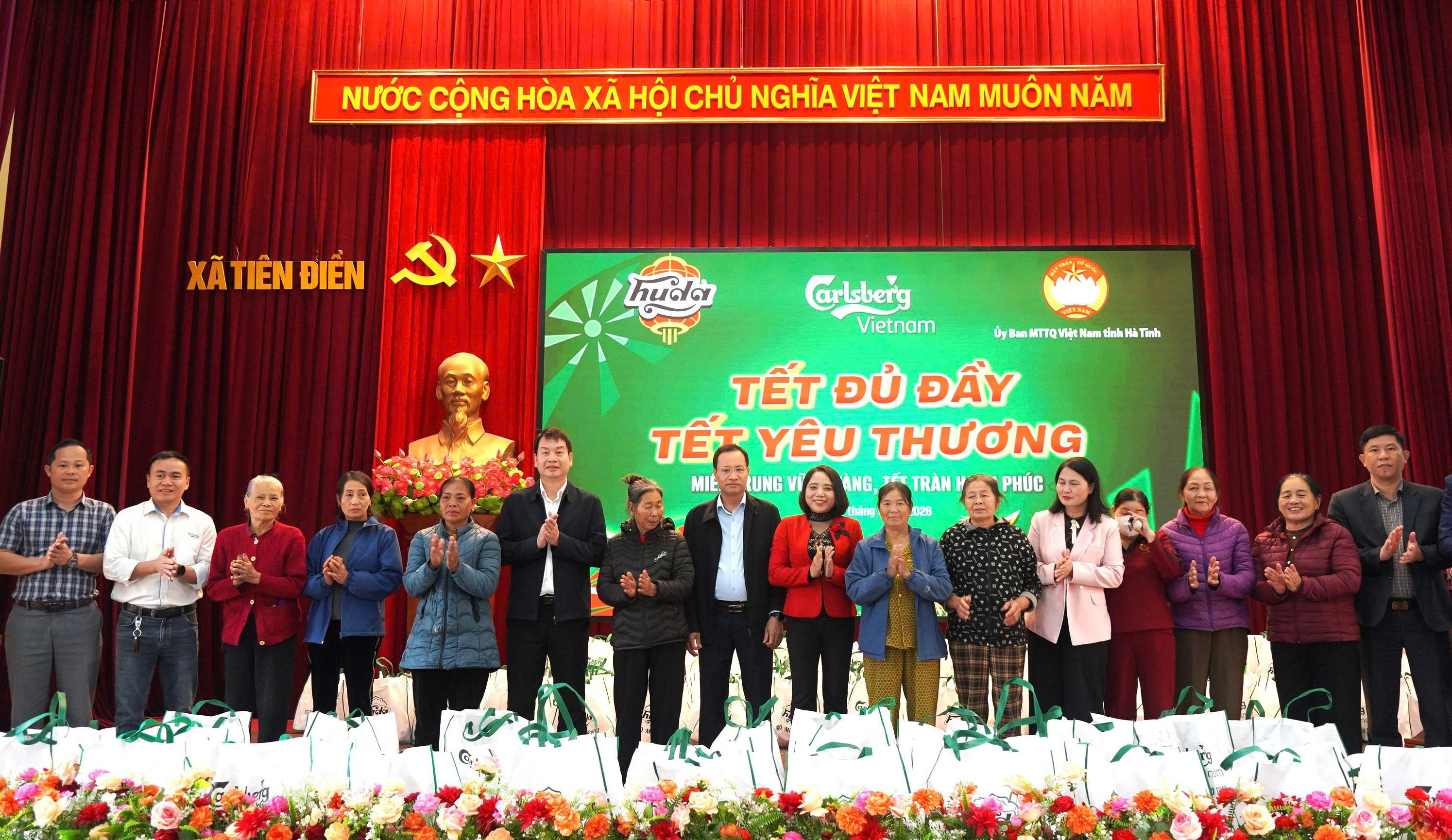 Tham dự chương trình có Bà Hồ Việt Hà Chủ doanh nghiệp Công ty TNHH thương mại dịch vụ Dương Hà; Đại diện Công ty bia Carlsberg Việt Nam; Bí thư đảng ủy xã Tiên Điền Nguyễn Văn Hiếu; Phó bí thư Lê Thị Thanh Tâm; Chủ tịch UBND xã Phan Văn Lĩnh; Phó chủ tịch HĐND Trần Hoàng Điệp; Chủ tich UBMTTQ xã Trần Văn Thuận.