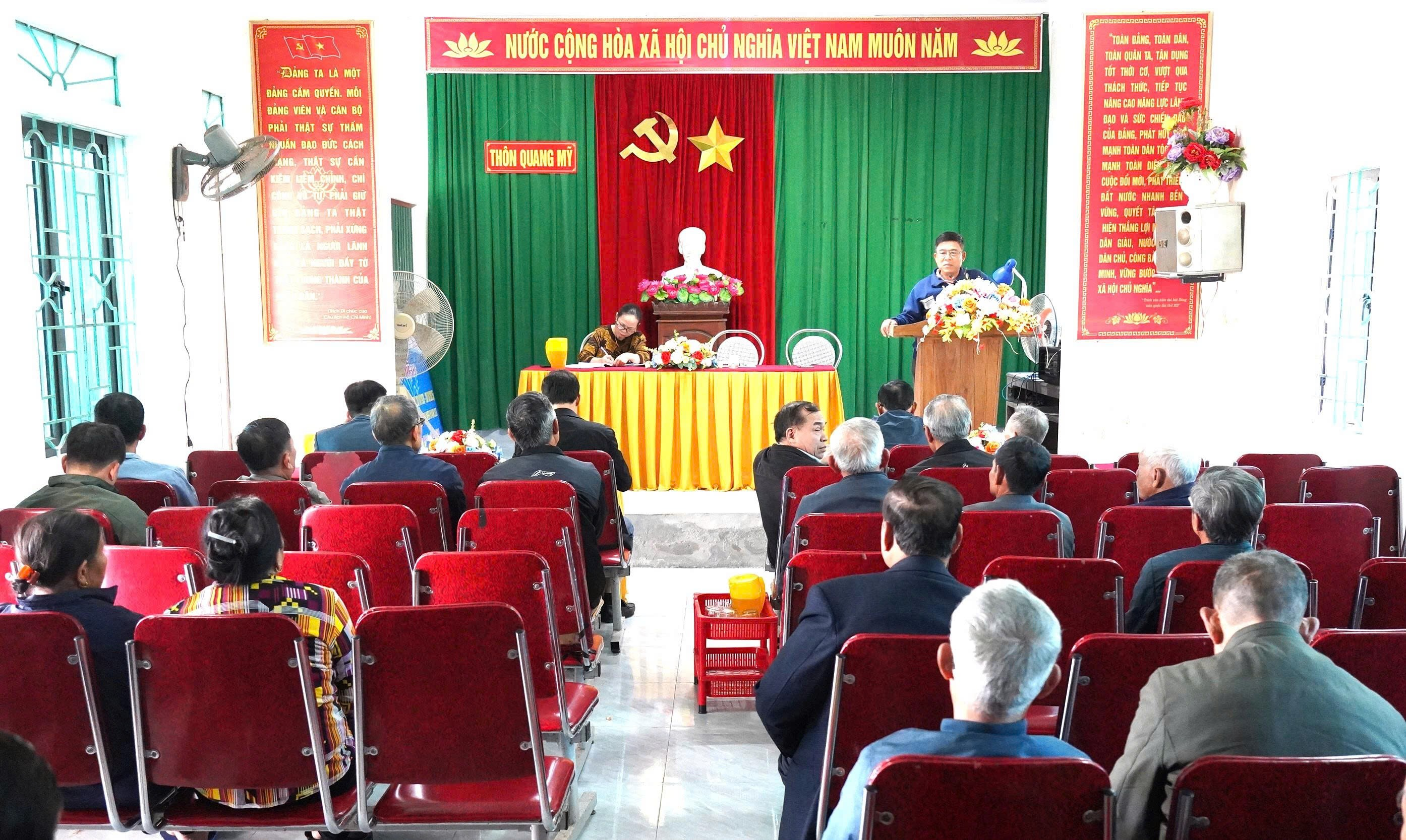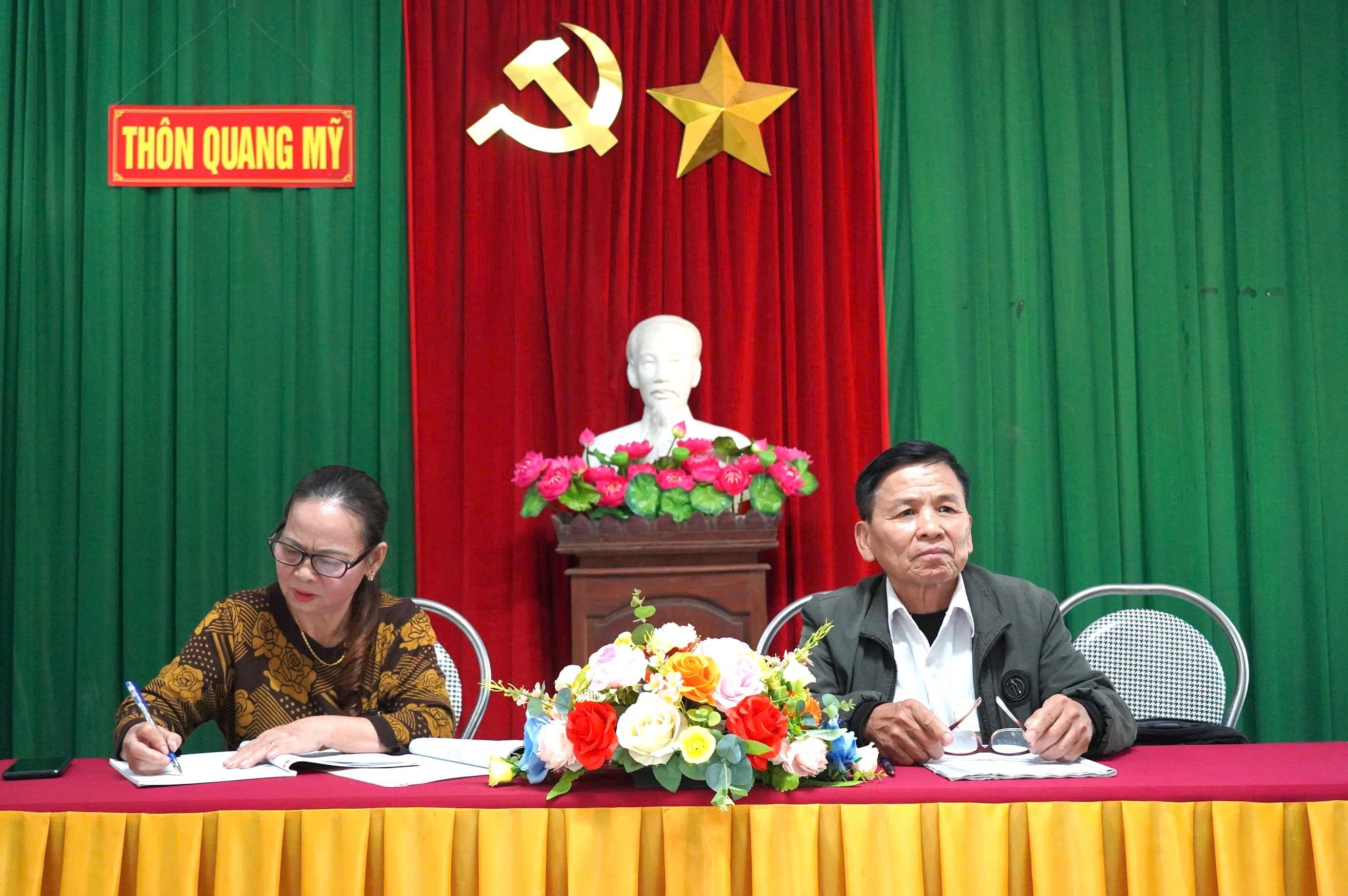 Chi bộ thôn Quang Mỹ hiện có 50 đảng viên. Tại buổi sinh hoạt, chi bộ đánh giá, kiểm điểm công tác lãnh đạo, chỉ đạo, tổ chức thực hiện nhiệm vụ trong tháng 1 và triển khai nhiệm vụ tháng 2 năm 2026; thông tin tình hình thời sự nổi bật trong nước và quốc tế, các văn bản chỉ đạo của cấp ủy cấp trên..