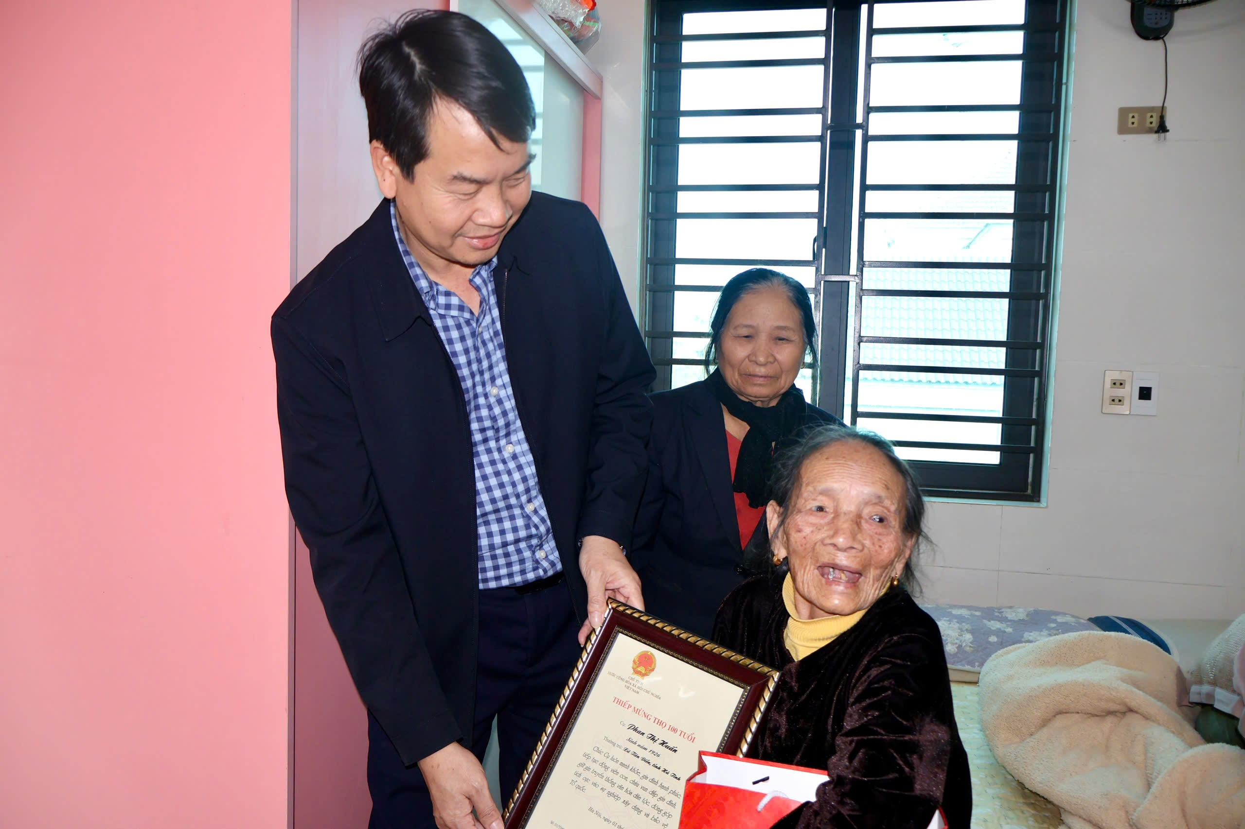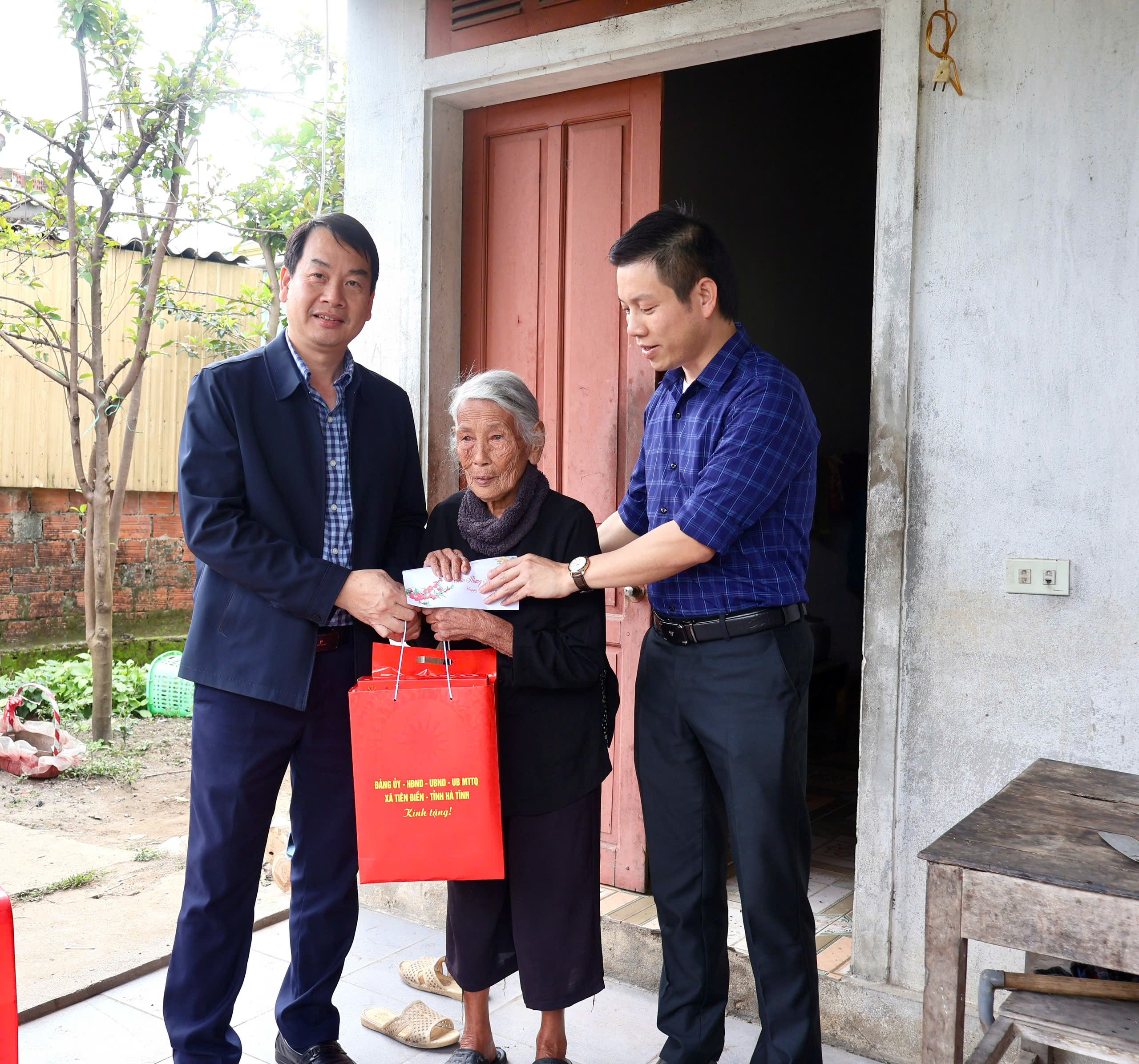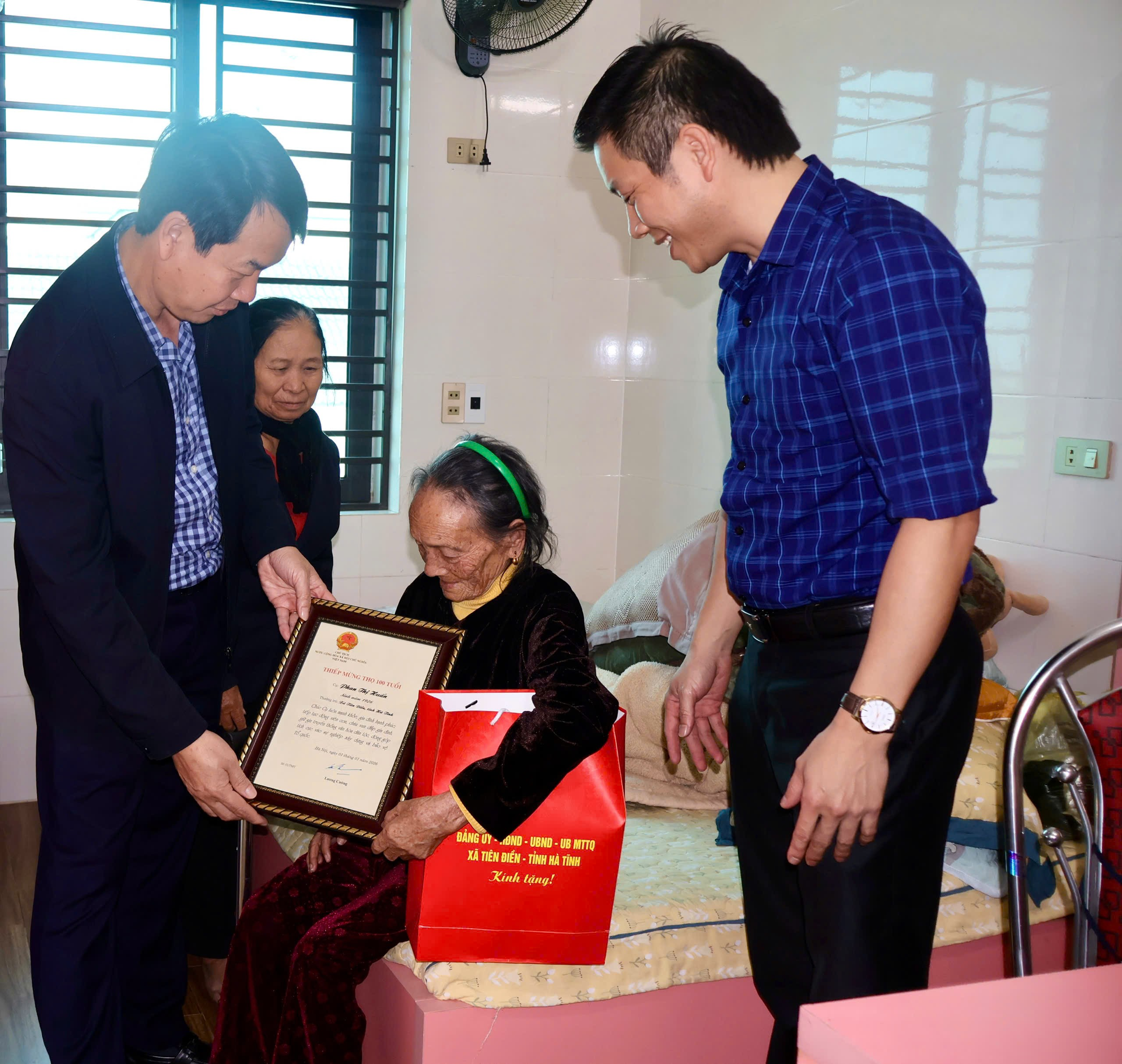 Chủ tịch UBND xã đã đến tặng quà tết cho Bà Kiều Thị Bổng ( thôn Yên Thông, vợ Liệt sỹ); Trao thiếp mừng thọ 100 tuổi của Chủ Tịch nước tặng Bà Phan Thị Huấn và Phan Thị Mình đều sinh năm 1926 ( thôn Yên Thông).