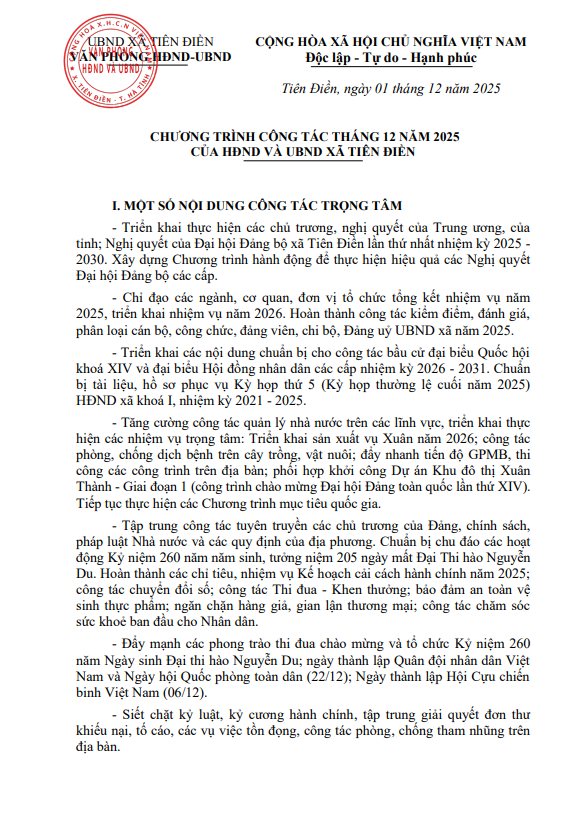 CHƯƠNG TRÌNH CÔNG TÁC THÁNG 12 NĂM 2025 CỦA HĐND VÀ UBND XÃ TIÊN ĐIỀNadmin08/12/2025A -A+admin08/12/2025A -A+CHƯƠNG TRÌNH CÔNG TÁC THÁNG 12 NĂM 2025 CỦA HĐND VÀ UBND XÃ TIÊN ĐIỀN File đính kèmThang12-Chuong-trinh-cong-tac.-673_chuonghvtiendien-05-12-2025_22h40p29(08.12.2025_06h56p34)_signed.pdf