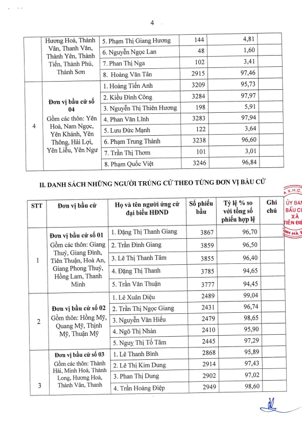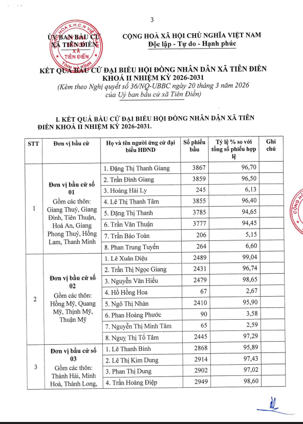 Công bố kết quả bầu cử và danh sách những người trúng cử đại biểu Hội đồng nhân dân xã Tiên Điền khoá II, nhiệm kỳ 2026-2031Admin20/03/2026A -A+Admin20/03/2026A -A+ Công bố kết quả bầu cử và danh sách những người trúng cử đại biểu Hội đồng nhân dân xã Tiên Điền khoá II, nhiệm kỳ 2026-2031