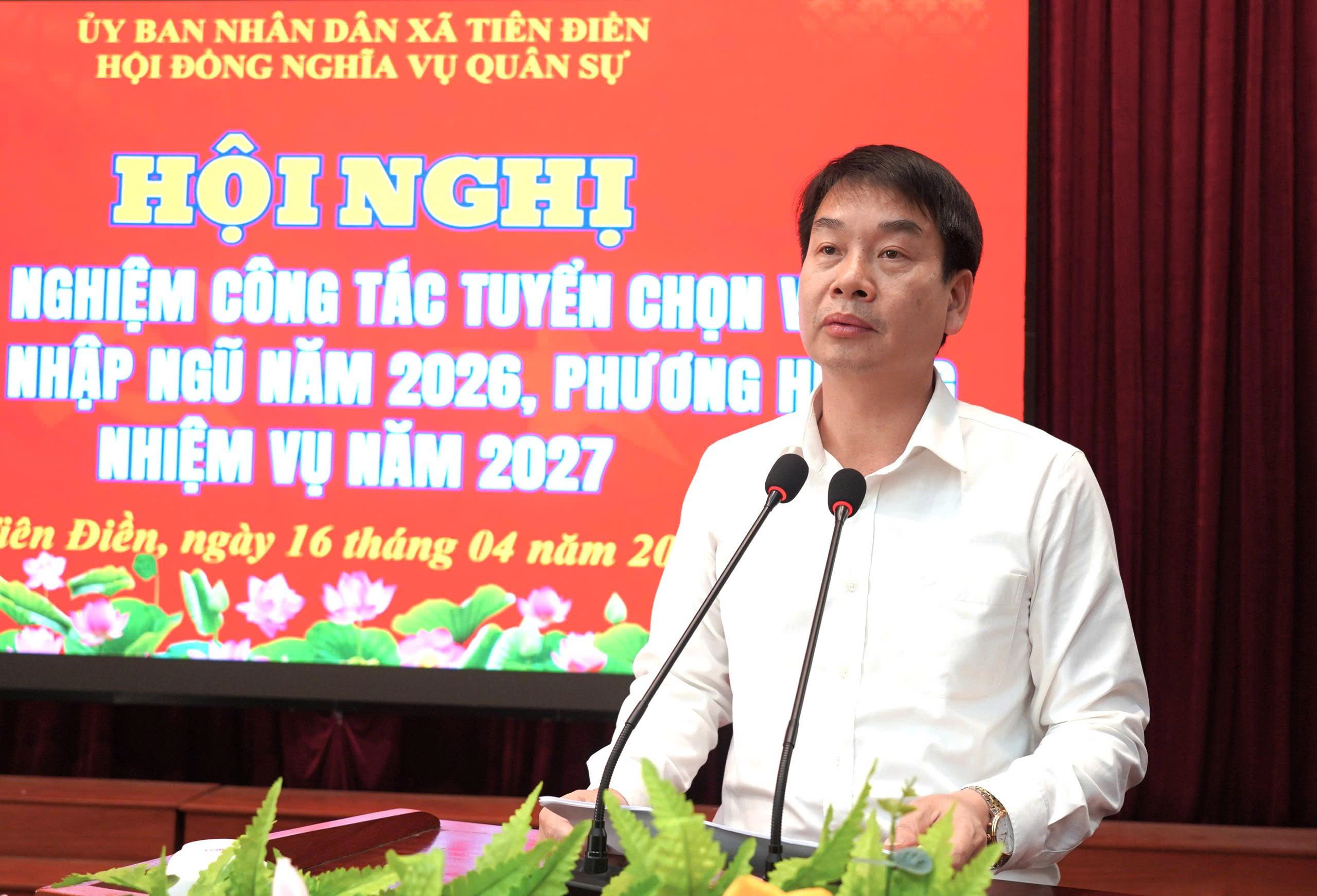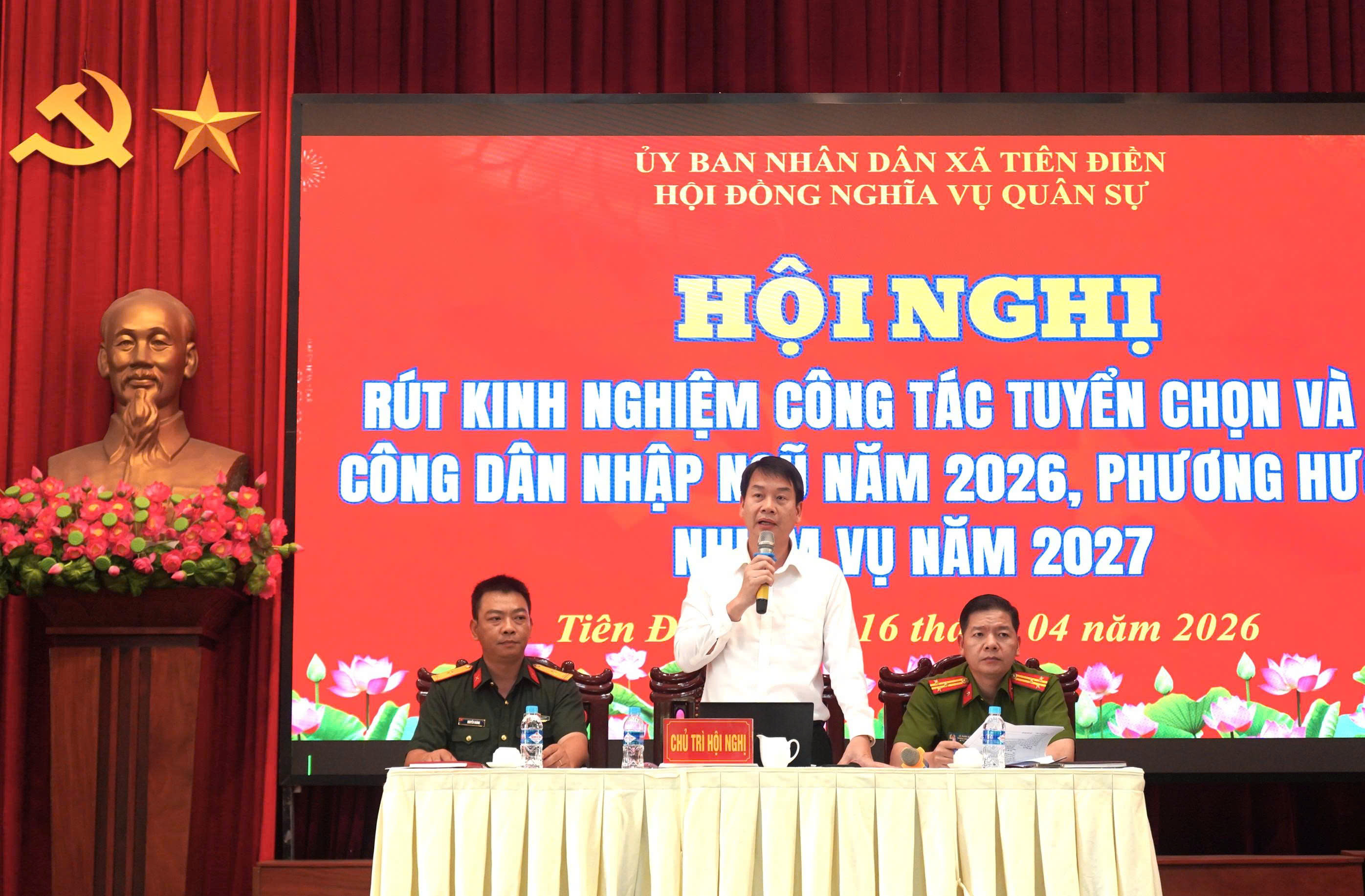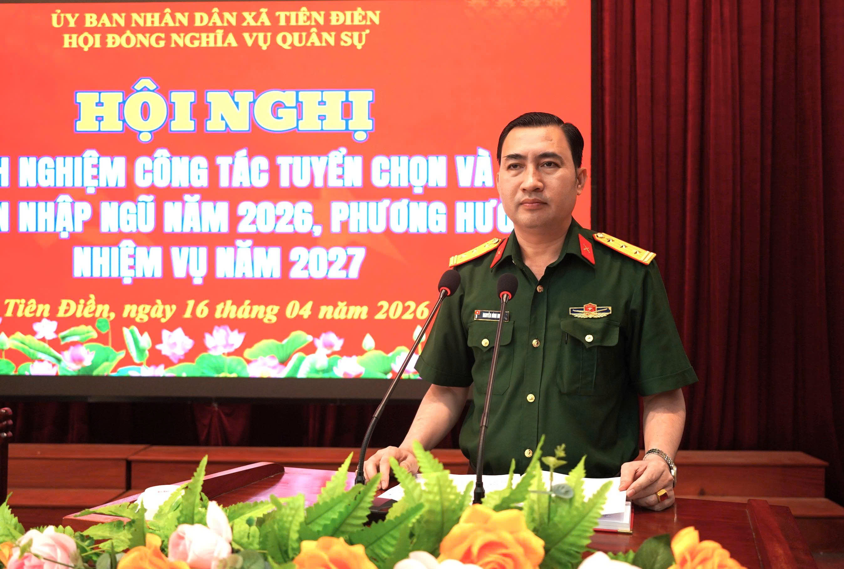 Phát biểu tại hội nghị, Thượng tá Nguyễn Đình Hoàng, Phó chỉ huy trưởng Ban chỉ huy PTKV1 – Nam Hồng Lĩnh đã ghi nhận, biểu dương những kết quả đạt được trong công tác tuyển chọn, gọi công dân nhập ngũ năm 2026 của xã Tiên Điền và đề nghị địa phương tiếp tục tăng cường sự lãnh đạo toàn diện của cấp ủy đảng, sự vào cuộc đồng bộ của cả hệ thống chính trị, xác định đây là nhiệm vụ chính trị quan trọng, thường xuyên. Đồng thời yêu cầu các ngành, đơn vị cần tiếp tục đẩy mạnh công tác tuyên truyền, phổ biến pháp luật về nghĩa vụ quân sự với nhiều hình thức phù hợp, tạo khí thế sôi nổi để ngày giao quân thực sự trở thành ngày hội của toàn dân; qua đó nâng cao ý thức, trách nhiệm của công dân, nhất là thanh niên.