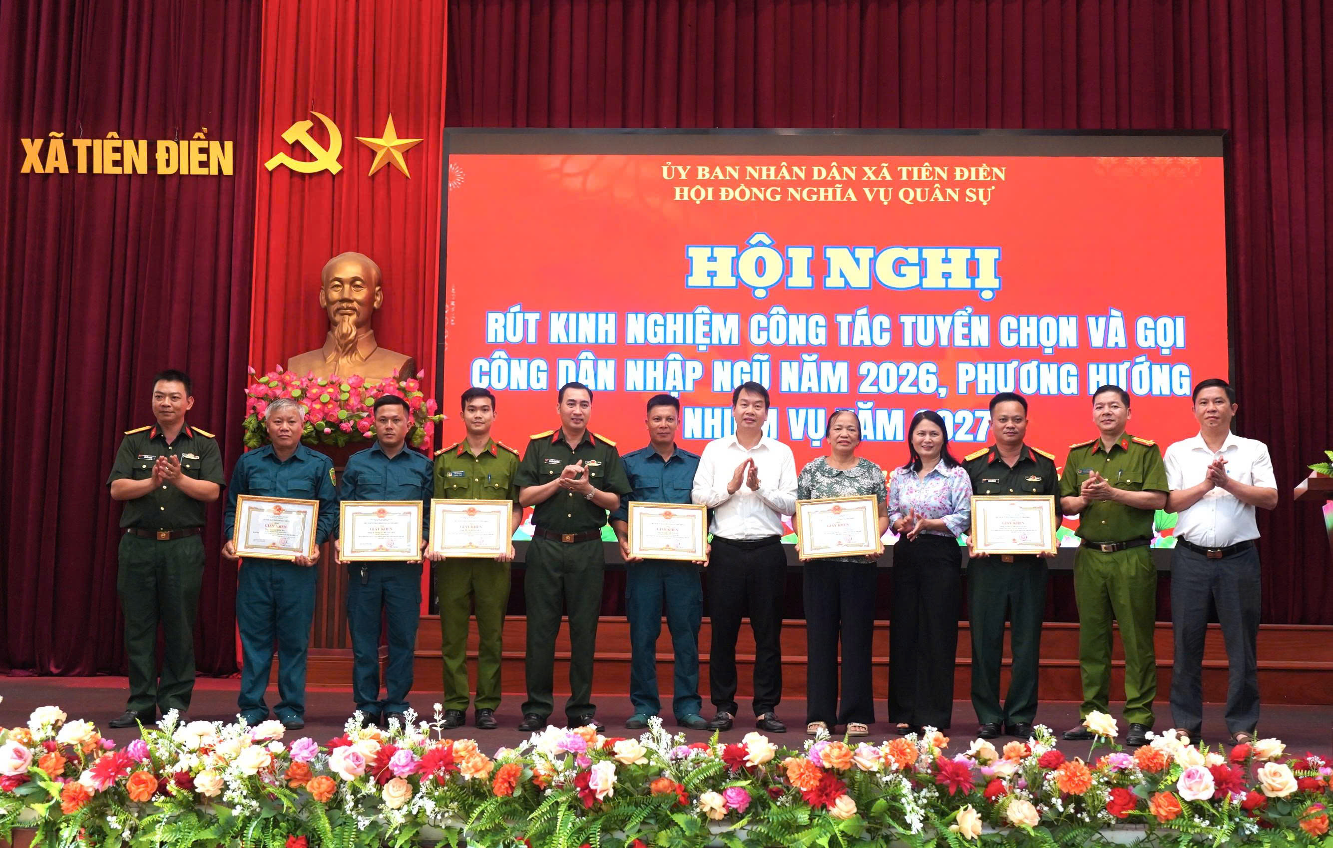 Nhân dịp này, UBND xã Tiên Điền khen thưởng 2 tập thể, 5 cá nhân có thành tích xuất sắc trong công tác tuyển chọn, gọi công dân nhập ngũ năm 2026.