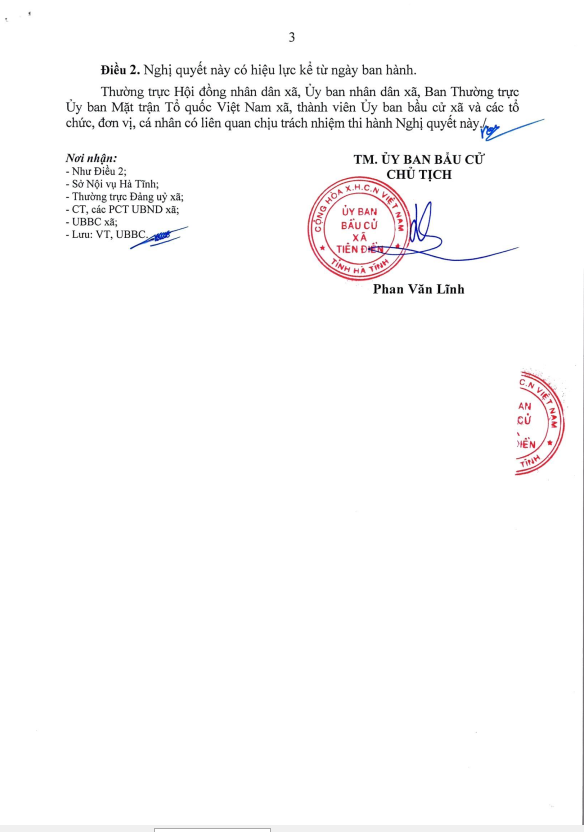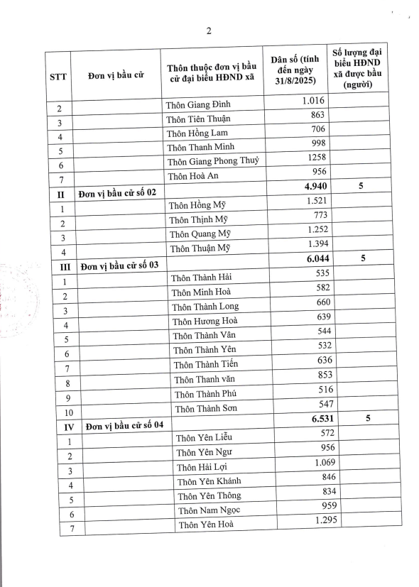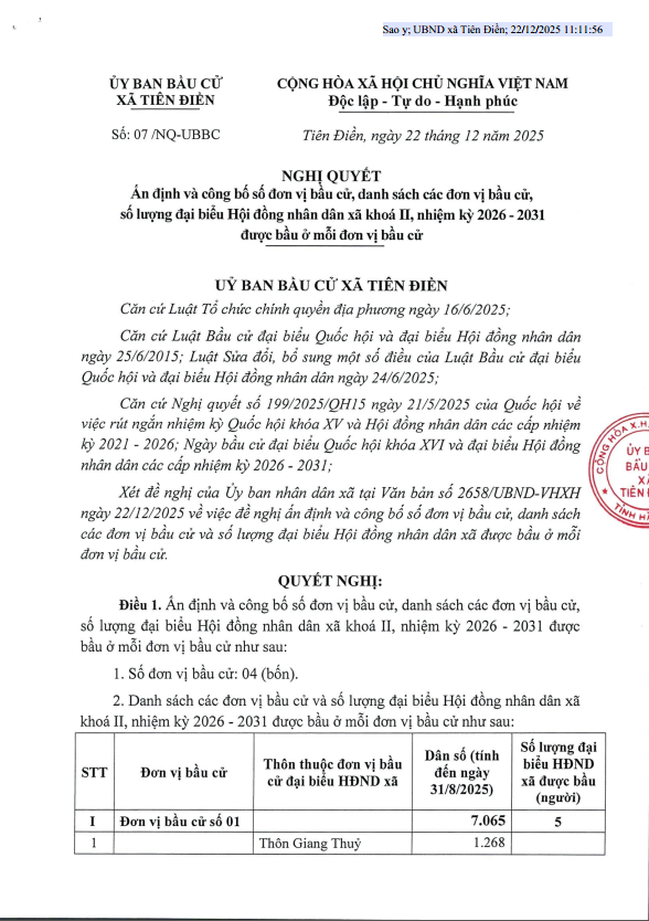 Nghị quyết ấn định và công bố số đơn vị cầu cử, danh sách các đơn vị bầu cử, số lượng đại biểu Hội đồng nhân dân xã khoá II, nhiệm kỳ 2026-2031 được bầu ở mỗi đơn vị bầu cử.