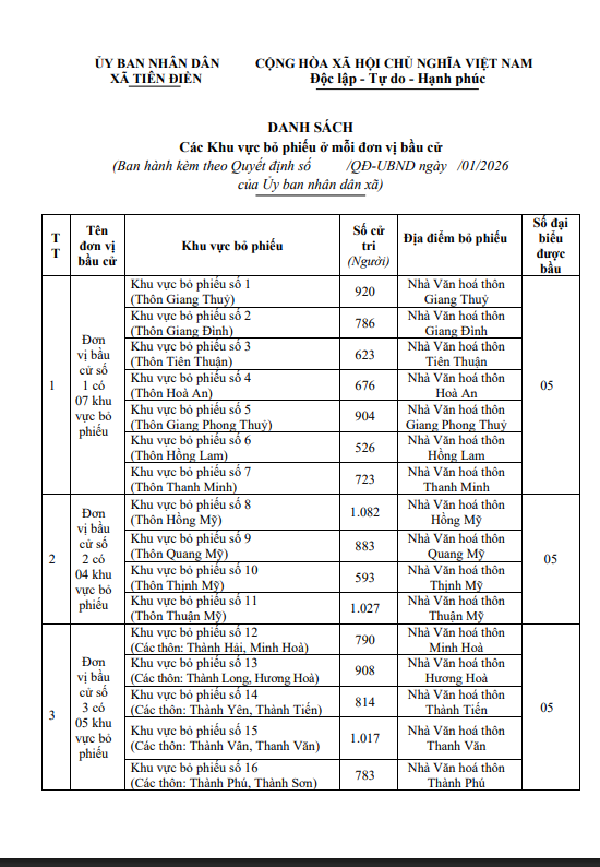 Quyết định Về việc phê chuẩn khu vực bỏ phiếu bầu cử đại biểu Quốc hội khóa XVIvà đại biểu Hội đồng nhân dân các cấp nhiệm kỳ 2026 - 2031