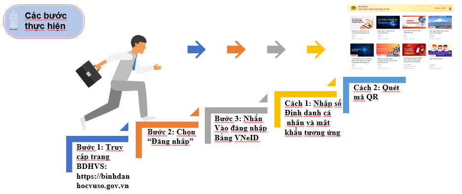 Các bước thực hiên đăng ký tham gia nền tảng Bình dân học vụ số: