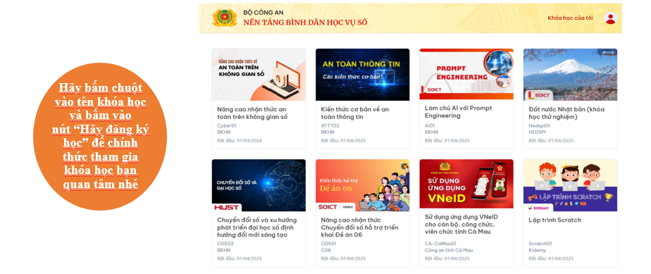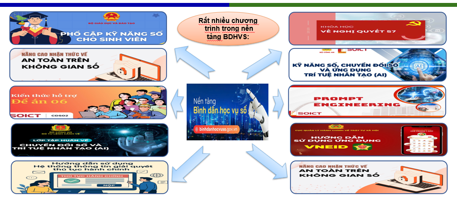 Nền tảng "Bình dân học vụ số” do Bộ Công an, phối hợp với Bộ KH & CN, ĐH Bách khoa Hà Nội và các bộ, ngành liên quan chủ trì xây dựng và vận hành nền tảng "Bình dân học vụ số; được ra mắt ngày 26/3/2025, tại địa chỉ: https://binhdanhocvuso.gov.vn/