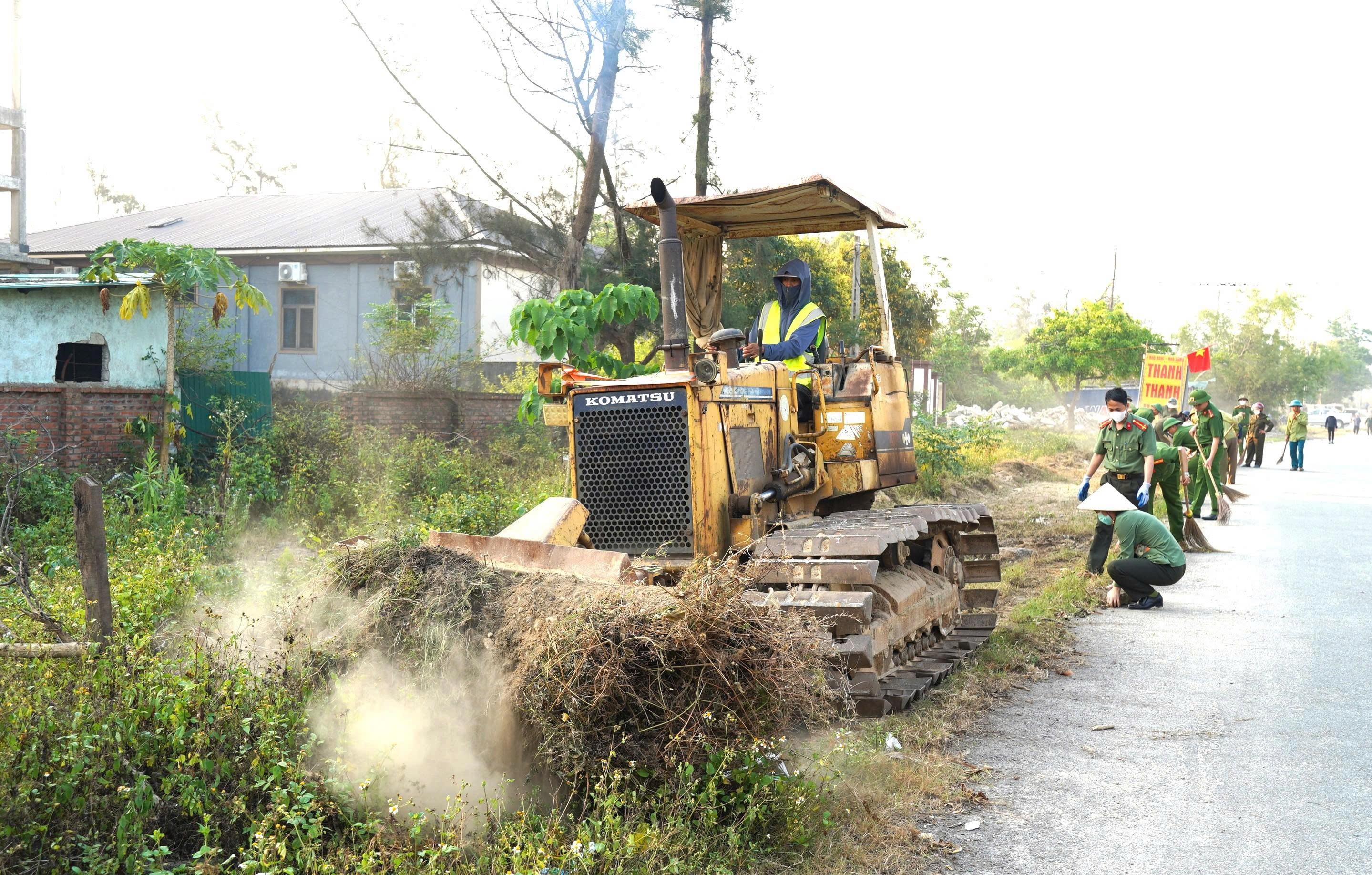 Địa phương còn huy động các thiết bị máy móc san lấp, vận chuyển vật liệu thu gom từ các công trình hư hỏng để làm thông thoáng các tuyến đường kết nối trong khu du lịch.