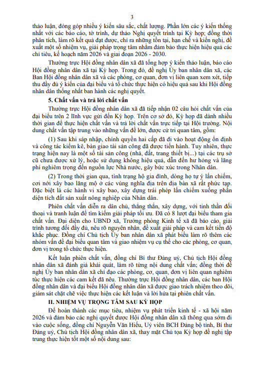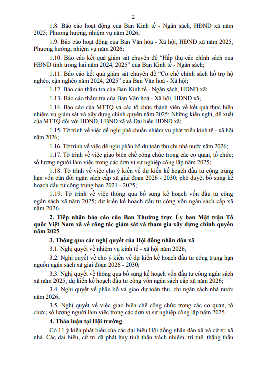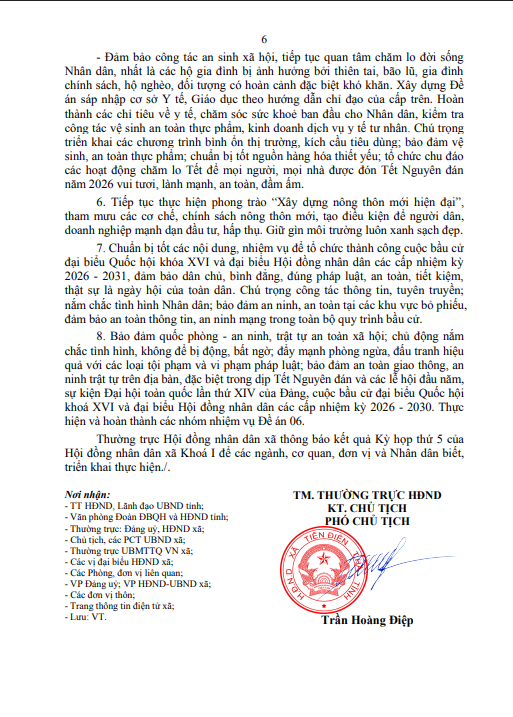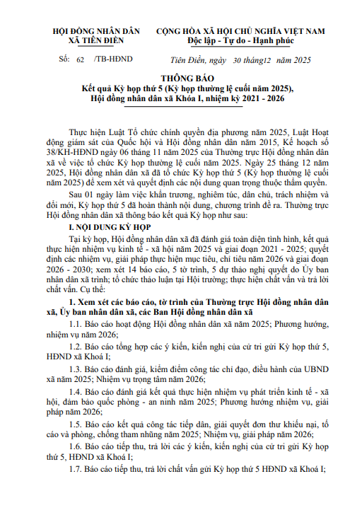 Hội đồng nhân dân xã Tiên Điền ban hành thông báo Số: /TB-HĐND Kết quả Kỳ họp thứ 5 (Kỳ họp thường lệ cuối năm 2025),