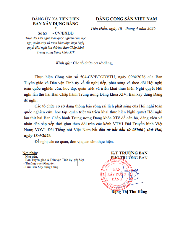 Thông báo theo dõi Hội nghị toàn quốc nghiên cứu, học tập, quán triệt và triển khai thực hiện Nghị quyết Hội nghị lần thứ hai Ban Chấp hành Trung ương Đảng khóa XIV