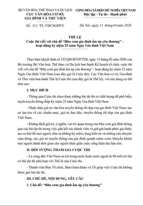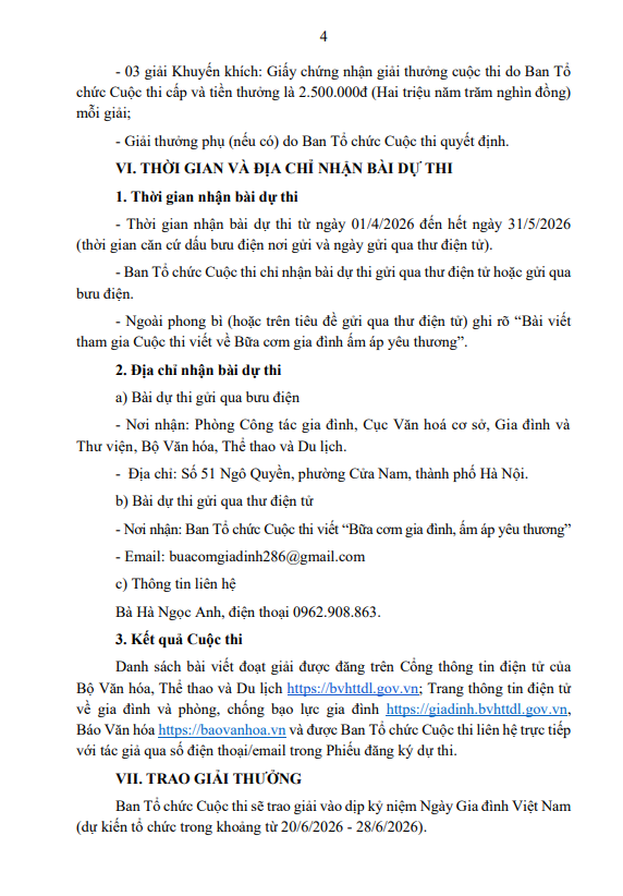 về gia đình và phòng, chống bạo lực gia đình https://giadinh.bvhttdl.gov.vn, Báo Văn hóa https://baovanhoa.vn và được Ban Tổ chức Cuộc thi liên hệ trực tiếp