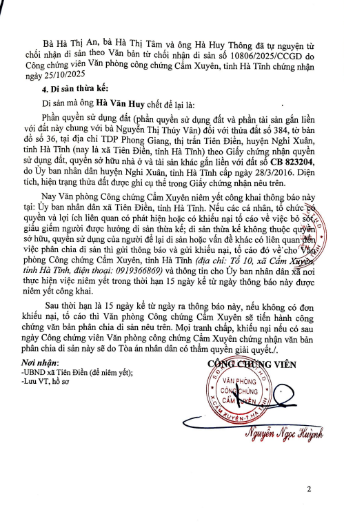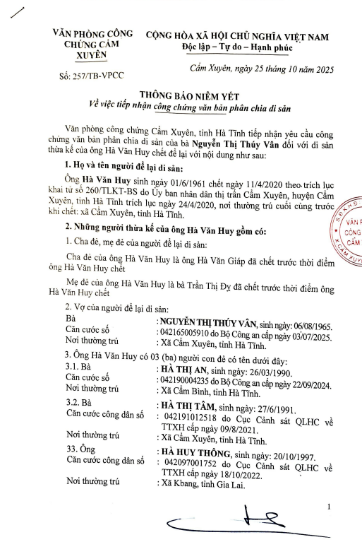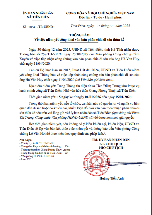 THÔNG BÁO Về việc niêm yết công khai văn bản phân chia di sản thừa kếadmin31/12/2025A -A+admin31/12/2025A -A+THÔNG BÁO Về việc niêm yết công khai văn bản phân chia di sản thừa kế