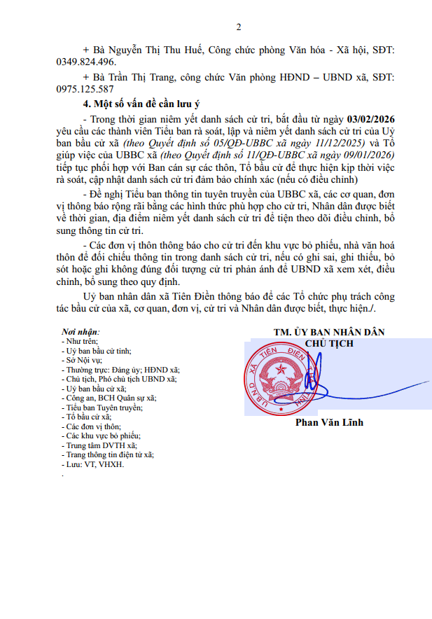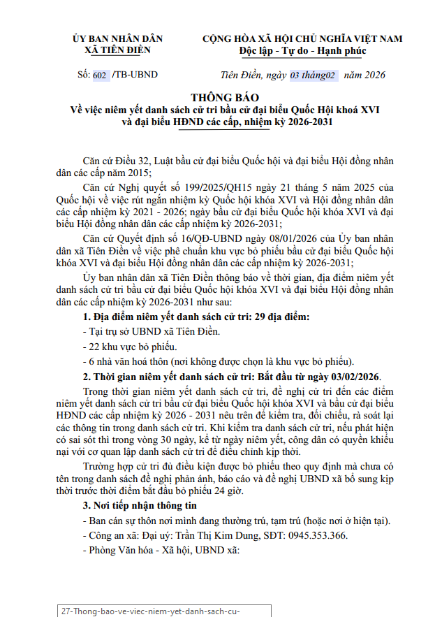 Thông báo Về việc niêm yết danh sách cử tri bầu cử đại biểu Quốc Hội khoá XVI và đại biểu HĐND các cấp, nhiệm kỳ 2026-2031