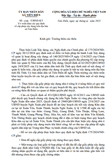 Thông báo V/v triển khai các quy định về cấp phép xây dựng trên địa bàn xã Tiên Điềnadmin08/10/2025A -A+admin08/10/2025A -A+V/v triển khai các quy định về cấp phép xây dựng trên địa bàn xã Tiên Điền