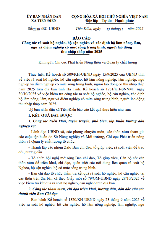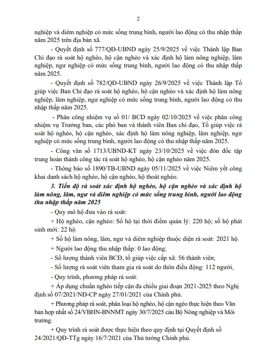 Thống kế hộ nghèo, hộ cận nghèo và xác định hộ làm nông, lâm, ngư và diêm nghiệp có mức sống trung bình, người lao động thu nhập thấp năm 2025