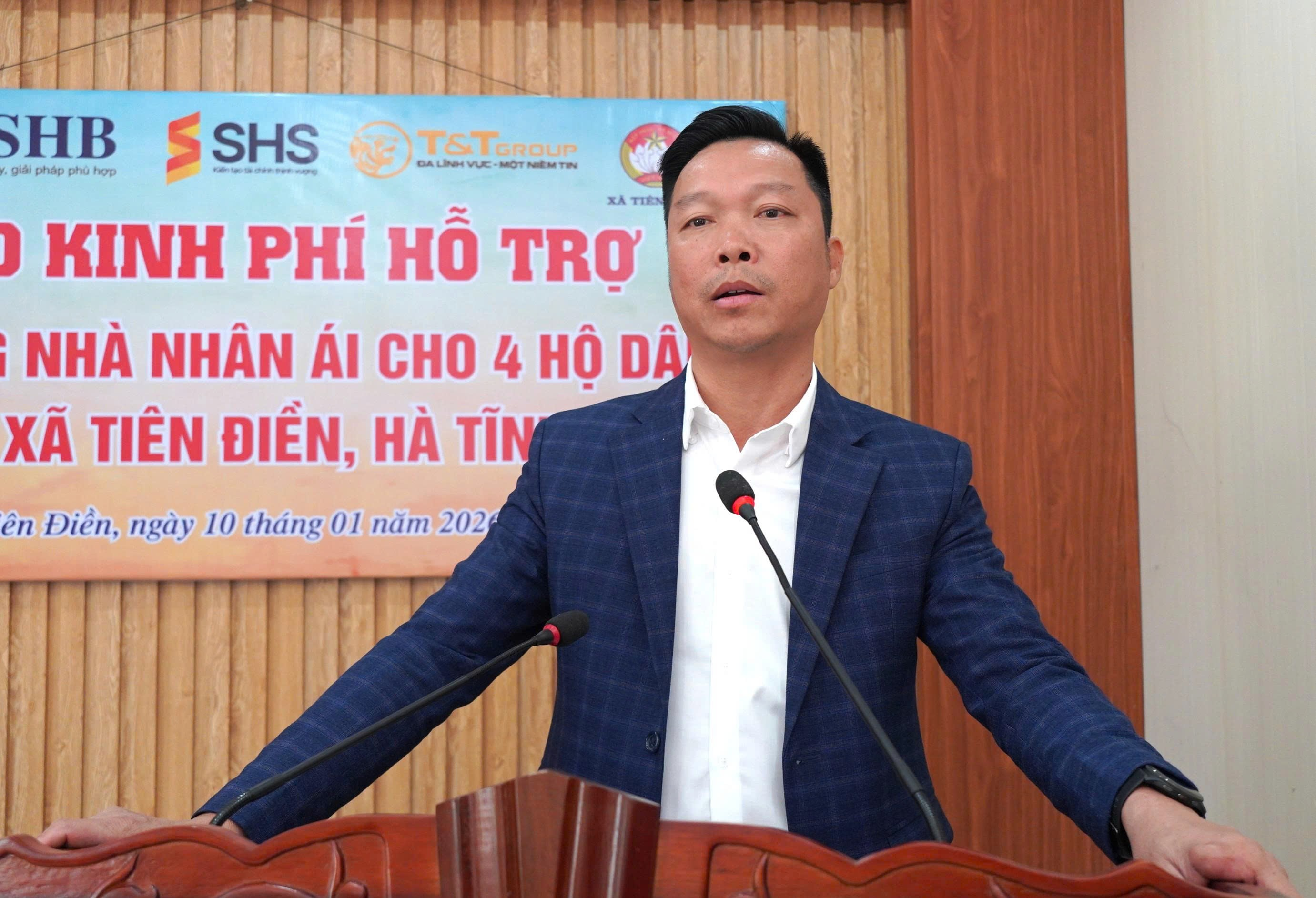 Đại diện chính quyền địa phương, Chủ tịch UBMTTQ xã Tiên Điền Trần Văn Thuận: "Sự hỗ trợ kịp thời, thiết thực của các đơn vị tài trợ có ý nghĩa đặc biệt quan trọng trong bối cảnh địa phương đang tích cực triển khai công tác khắc phục hậu quả bão số 10, đặc biệt là việc tái thiết nhà ở cho người dân. Mong rằng thời gian tới, tập đoàn kinh tế T&T Group, Công ty cổ phần chứng khoán Sài Gòn (SHB); Ngân hàng Thương mại cổ phần Sài Gòn – Hà Nội (SHB). tiếp tục đồng hành, triển khai nhiều hoạt động an sinh xã hội trên địa bàn”.
