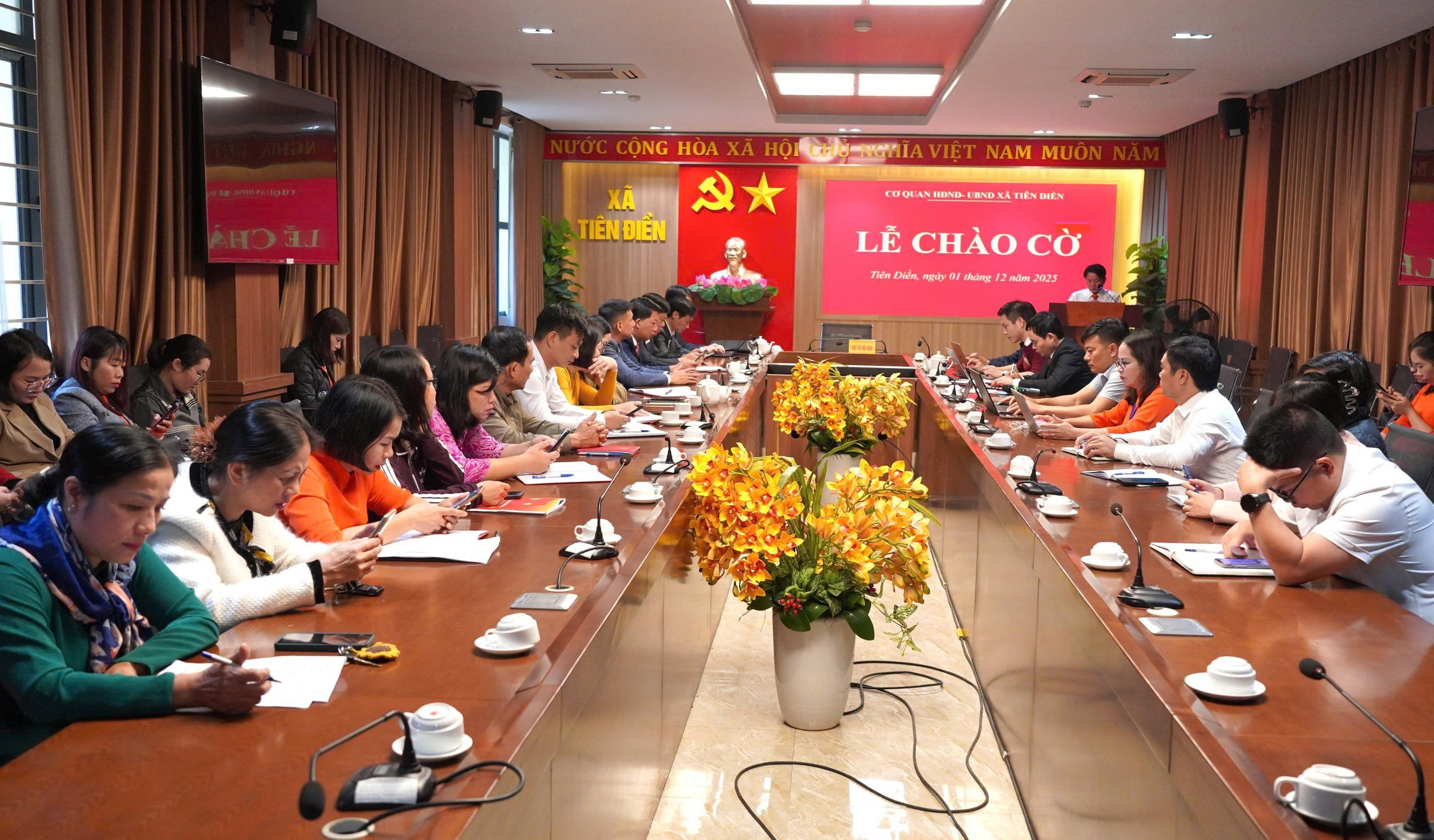 Sau nghi lễ chào cờ trang trọng, đại diện chính quyền xã đã thông tin đến cán bộ, Đảng viên, công chức, viên chức cơ quan Đảng, đoàn thể, chính quyền kết quả thực hiện nhiệm vụ chính trị tháng 11, giải pháp trọng tâm tháng 12 năm 2025. Theo đó, trong tháng 11/2025, UBND xã Tiên Điền đã tập trung lãnh đạo, chỉ đạo toàn diện các nhiệm vụ chính trị, đạt nhiều kết quả quan trọng trên các lĩnh vực xây dựng Đảng phát triển kinh tế – xã hội, đảm bảo an ninh – quốc phòng.