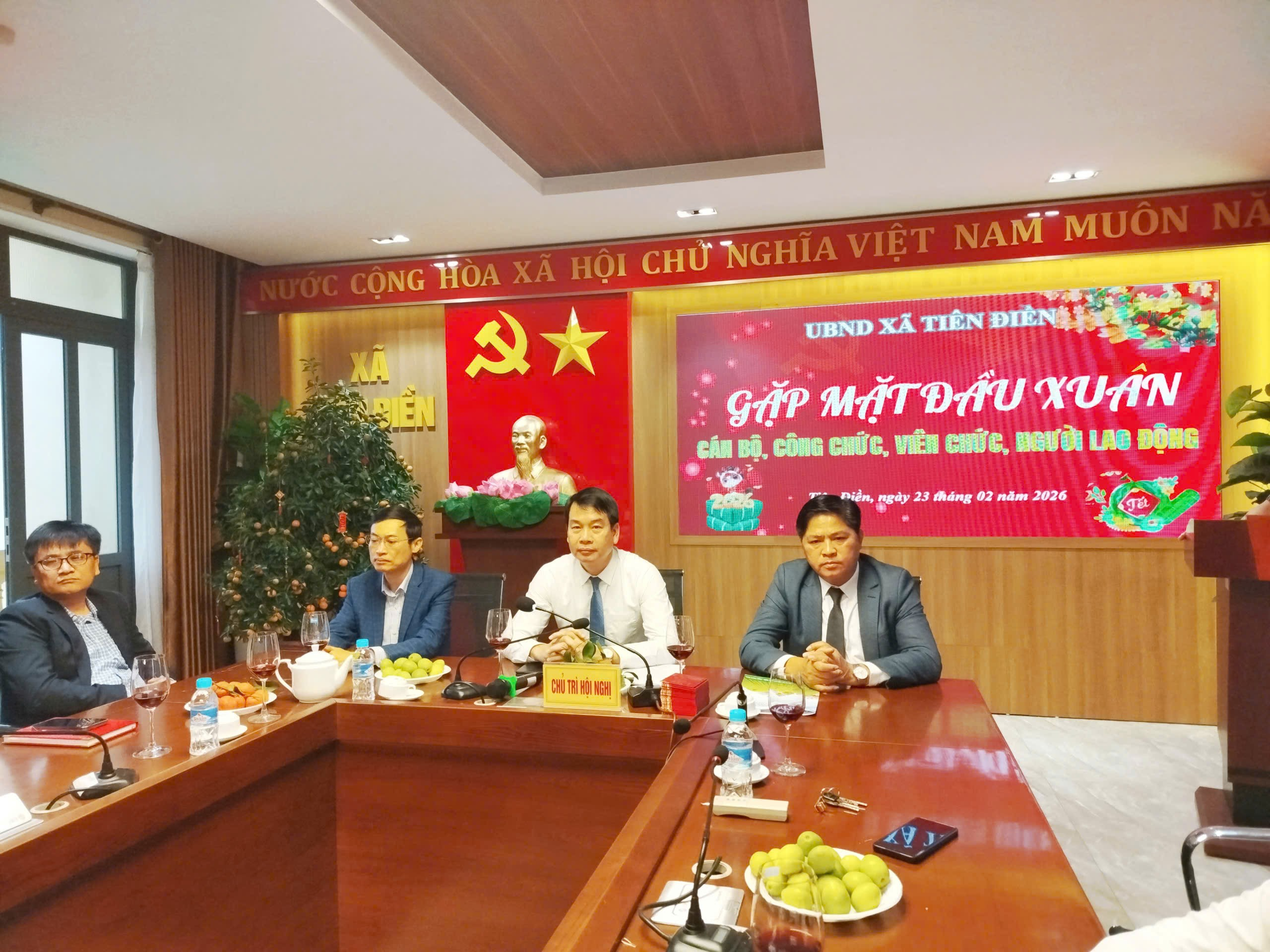 Trong không khí vui tươi, phấn khởi những ngày đầu năm mới, sáng ngày 23/02, UBND xã Tiên Điền tổ chức gặp mặt đầu xuân, triển khai nhiệm vụ công tác năm 2026. Dự buổi gặp mặt có Chủ tịch UBND xã Phan Văn Lĩnh; Phó CT UBND xã Lê Thanh Bình và Hoàng Tiến Anh cùng toàn thể cán bộ, công chức, người lao động.