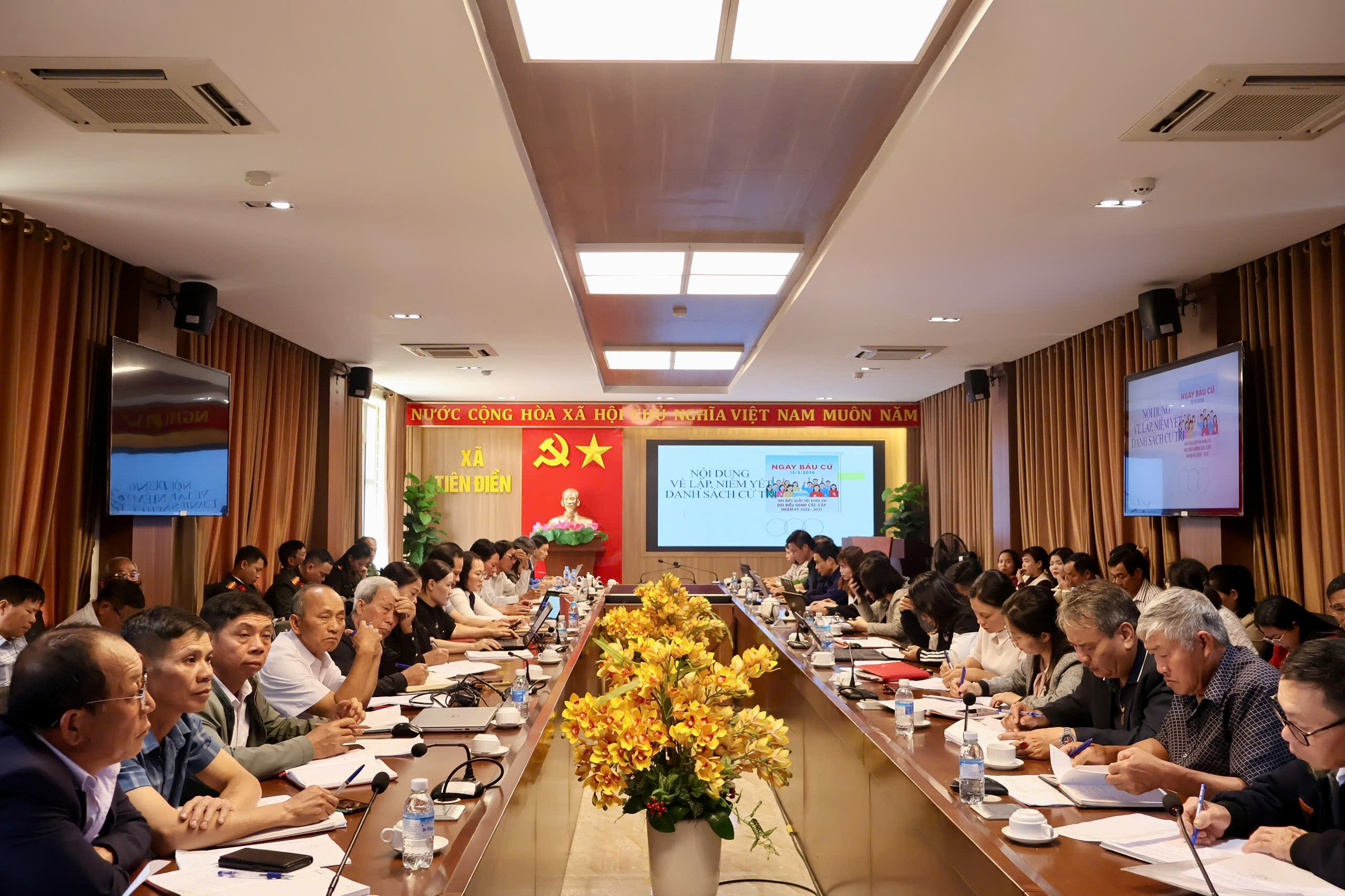 Ngày 19/01/2026, Ủy ban nhân dân xã Tiên Điền đã tổ chức tập huấn nghiệp vụ rà soát, lập danh sách cử tri. Thành phần tham dự: Tiểu ban rà soát, lập danh sách và viết thẻ cử tri cử Uỷ ban bầu cử xã, Tổ giúp việc Uỷ ban bầu cử xã và các đồng chí Bí thư Chi bộ, Thôn trưởng, Trưởng ban CTMT 28 đơn vị thôn trên địa bàn.