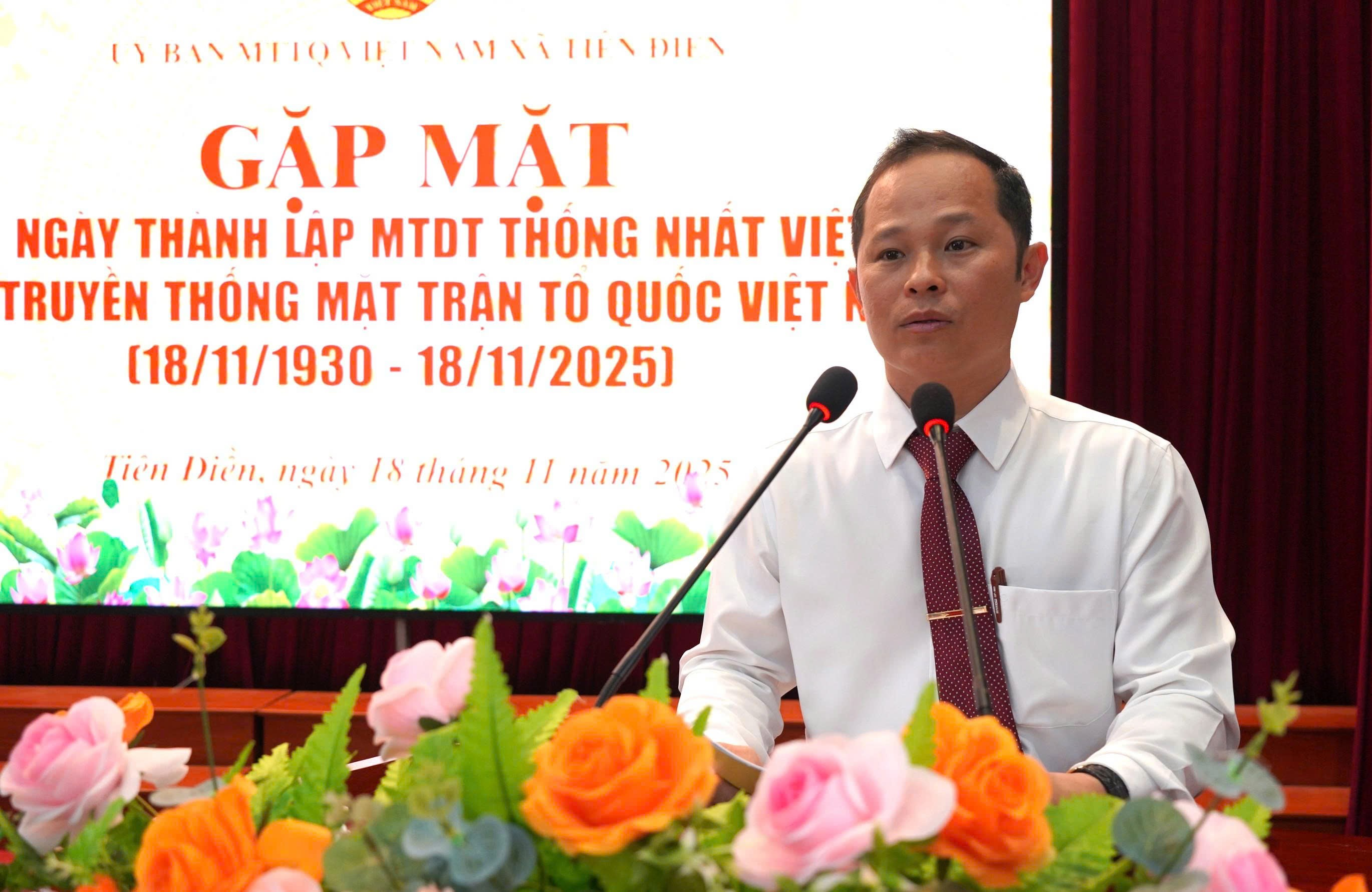 Phát biểu tại buổi gặp mặt, Phó bí thư thường trực Đảng uỷ xã Tiên Điền Lê Thị Thanh Tâm đã ghi nhận và biểu dương những kết quả đạt được của Mặt trận xã trong thời gian qua, đồng thời kêu gọi toàn thể cán bộ, đảng viên và nhân dân tiếp tục phát huy tinh thần đoàn kết, nêu cao trách nhiệm công dân, chung sức xây dựng quê hương Tiên Điền ngày càng giàu đẹp, văn minh.